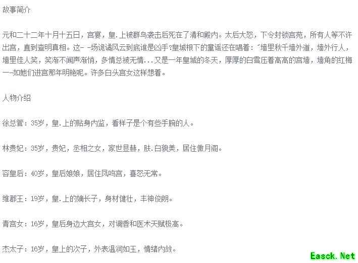 《我是谜》宫墙怨剧本答案攻略宫墙怨凶手是:徐总管 故事简介、人物介绍