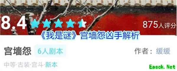 《我是谜》是一款创意十足的推理类手游,玩家可以在这里游戏体验到经典的影视剧情、谍战剧、侦探剧、仙侠剧等,下面手游网小编就给大家带来了《我是谜》宫墙怨凶手解析,想了解宫墙怨剧本凶手是谁的小伙伴一起看看吧! >>>>小编推荐:《我是谜》剧透凶手合集