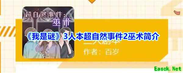 《我是谜》3人剧本【超自然事件2:巫术】简介剧本作者:百岁 剧本类型:系列 剧本人数:3 剧本时长:1小时