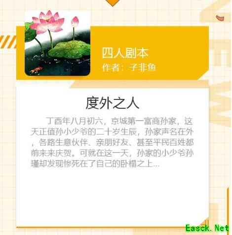 以上就是小编整理带来的《我是谜》4人剧本度外之人简介,更多精彩内容,请点击关注手游网,小编将持续为您更新! |