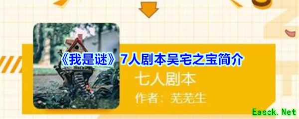 《我是谜》7人剧本吴宅之宝怎么样呢?该剧本的凶手是谁呢?这些都是需要大家去游戏中自我探寻的,下面给大家带来的是《我是谜》7人剧本吴宅之宝简介,想要简单了解剧本的小伙伴可以关注一下! >>>>小编推荐:《我是谜》剧本合集