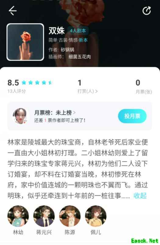 《我是谜》是明星大侦探官方指定推理剧本杀APP,拥有丰富的剧本,超快的匹配,稳定的即时语音。让你剧本杀起来更加轻松。我是谜双姝凶手是谁?这是一个四人感情剧本,推理的难度不大,不过其中的动人情感和精彩故事情节却是特别棒。下面给大家带来的是《我是谜》双姝凶手答案解析介绍,感兴趣的小伙伴可以关注一下! >>>>小编推荐:《我是谜》剧本合集 >>>>小编推荐:《我是谜》剧透凶手合集