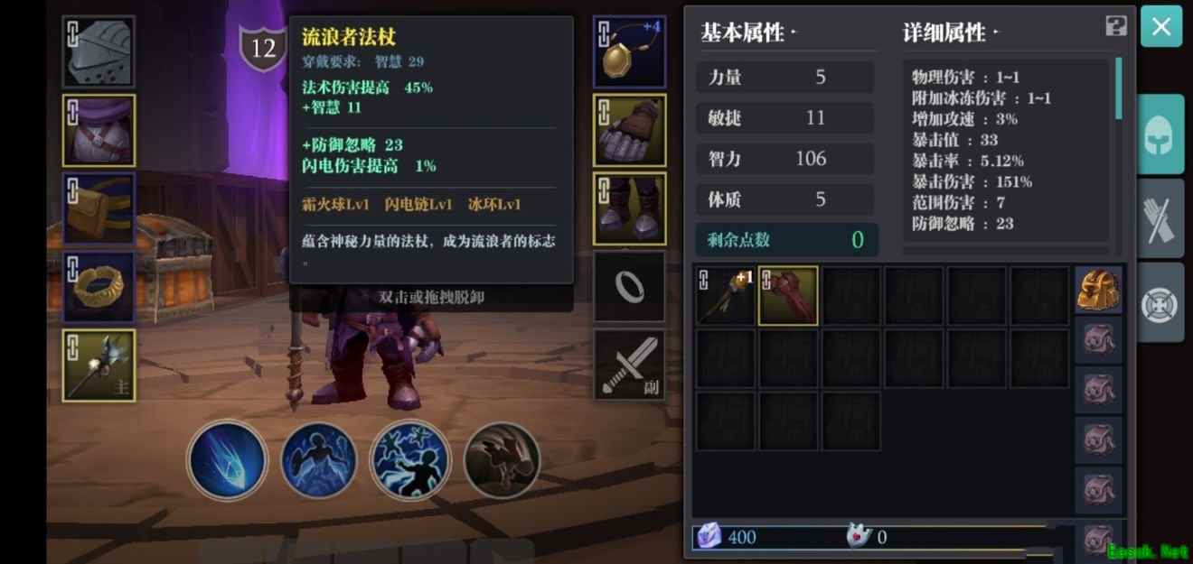 全智:法师(除了法师,基本没有加智的) 法伤很美、伤害很高,皮很脆,只要有控就不怕boss,非常吃武器技能。或者说,法师几乎是最吃武器技能的。要玩法爷的话,得准备好很多钱,还有多捡法杖,有需要的技能绑好带走,给主武器当材料。 我测试的时候,用过最好用的技能冰环(堪称神技,不过也有大佬说,到了困难级别boss不吃控)、雷暴、喷火、火路,不喜欢或者不习惯的(水平有限,或许没有发挥技能真正的威力):惩戒、暴风雪、雷球。还有霜火球、冰锥术之类的不怎么用,就不做过多评论了(话说霜火球真的很想吐槽,跟干将的技能一样,弹道诡异)