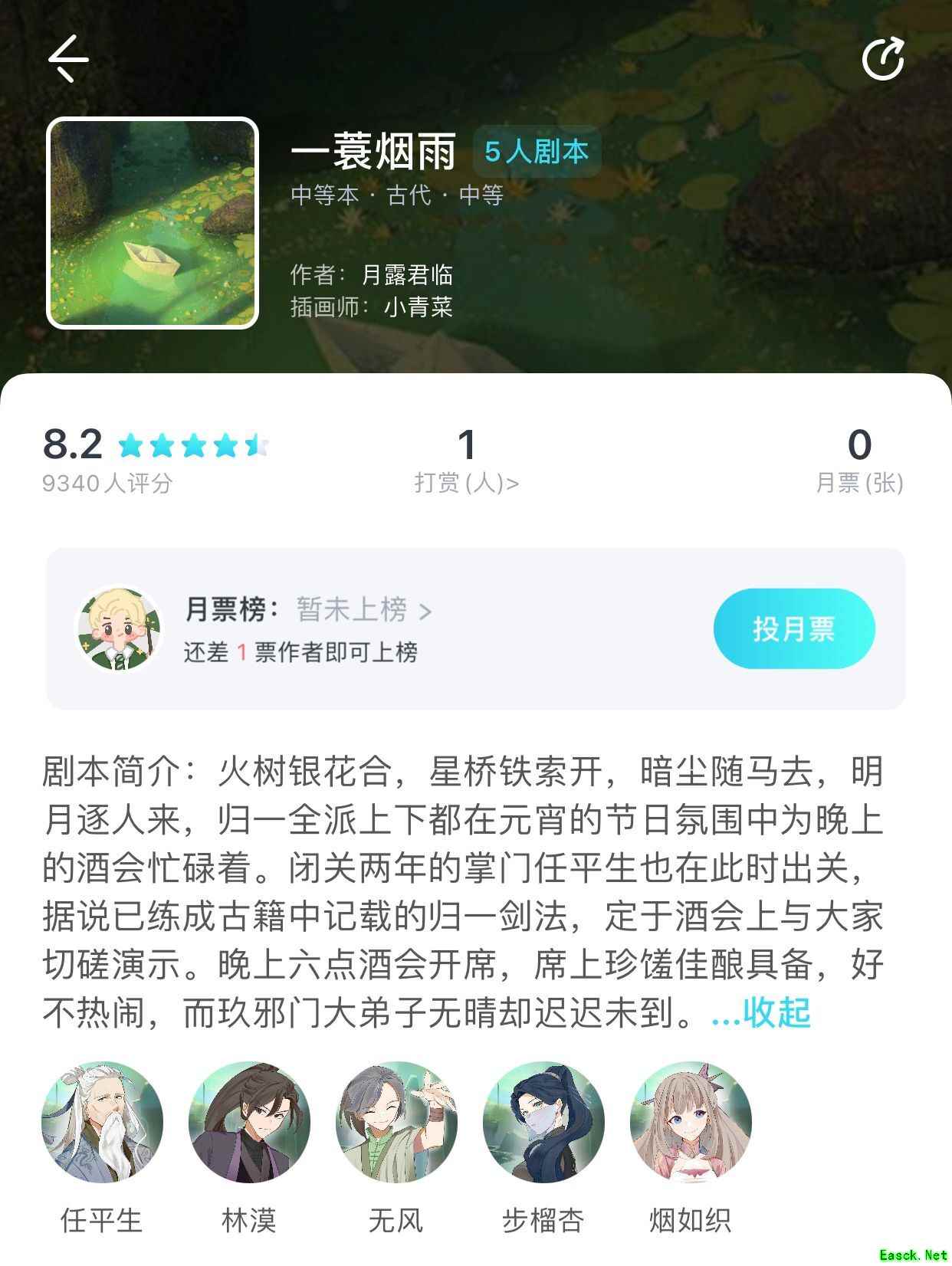 《我是谜》一蓑烟雨剧本真相答案攻略真凶:无风、帮凶:任平生、死者:无晴 人物动机 林漠:保护即将和无晴参加院内小比的小 师妹烟如织 任平生:隐瞒当年步家-事,保护无风和步留行 步榴杏(步留行):杀母之仇 无凤(NPC意识觉醒):为母报仇并且保护步留行 烟如织(严茹栀):作为攻略NPC林漠的玩家,接到攻略任务,保护攻略对象林漠