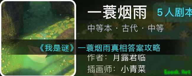 《我是谜》是明星大侦探官方指定推理剧本杀APP,拥有丰富的剧本,其中【一蓑烟雨】剧本凶手是谁,真相是什么呢?下面给大家带来的是《我是谜》一蓑烟雨剧本真相答案攻略介绍,感兴趣的小伙伴可以关注一下! >>>>小编推荐:《我是谜》剧本合集 >>>>小编推荐:《我是谜》剧透凶手合集