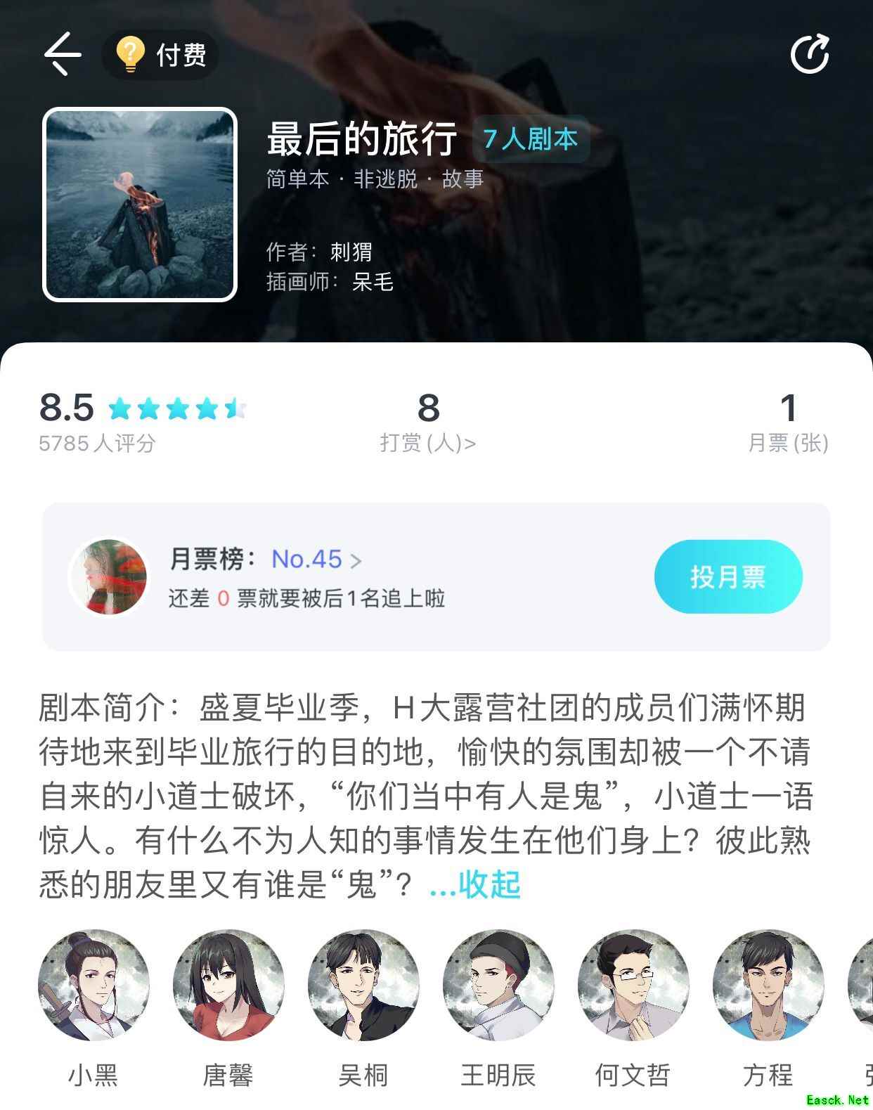 《我是谜》是明星大侦探官方指定推理剧本杀APP,拥有丰富的剧本,其中【最后的旅行】剧本凶手是谁,真相是什么呢?下面给大家带来的是《我是谜》最后的旅行剧本真相答案攻略介绍,感兴趣的小伙伴可以关注一下! >>>>小编推荐:《我是谜》剧本合集 >>>>小编推荐:《我是谜》剧透凶手合集