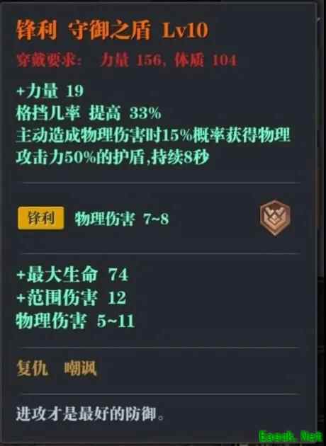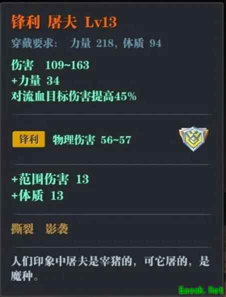 11、12级的屠夫才有使用价值 13级锋利屠夫是毕业装备之一 守御之盾(核心)