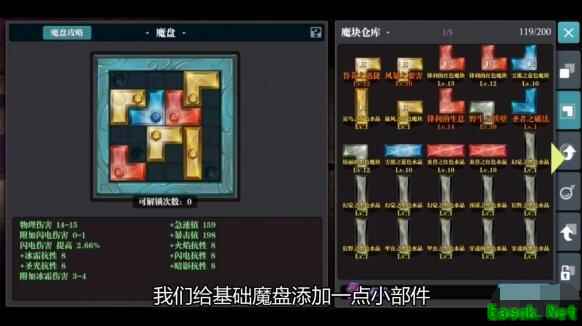 游戏中期 我们给基础魔盘添加一点小部件。 转出左下角致命一击。 右上角连续进攻。 右下角迅猛。