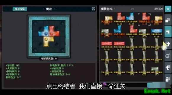 终结者魔盘 法盘凑出中间三个宝石。 直接跳深渊点魔盘。 点不出终结者法盘直接就退。 返回营地,再来一回。 点出终结者,我们直接一命通关。