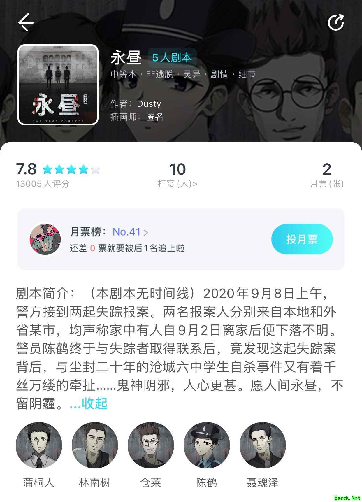 《我是谜》是明星大侦探官方指定推理剧本杀APP,拥有丰富的剧本,其中【永昼】剧本凶手是谁,真相是什么呢?下面给大家带来的是《我是谜》永昼剧本真相答案攻略介绍,感兴趣的小伙伴可以关注一下! >>>>小编推荐:《我是谜》剧本合集 >>>>小编推荐:《我是谜》剧透凶手合集