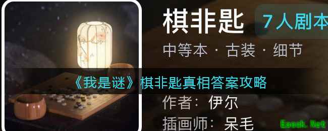 《我是谜》游戏app是一款烧脑的推理类益智游戏,各种类型的剧本应有尽有,其中【棋非匙】剧本凶手是谁,真相是什么呢?下面给大家带来的是《我是谜》棋非匙剧本真相答案攻略介绍,感兴趣的小伙伴可以关注一下! >>>>小编推荐:《我是谜》剧本答案攻略大全