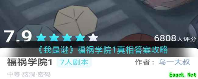 《我是谜》游戏app是一款烧脑的推理类益智游戏,各种类型的剧本应有尽有,其中【福祸学院1】剧本凶手是谁,真相是什么呢?下面给大家带来的是《我是谜》福祸学院1剧本真相答案攻略介绍,感兴趣的小伙伴可以关注一下! >>>>小编推荐:《我是谜》剧本答案攻略大全