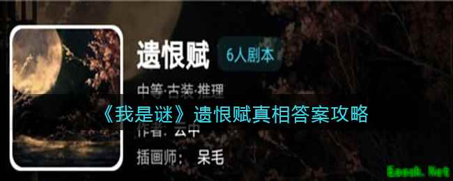 《我是谜》游戏app是一款烧脑的推理类益智游戏,各种类型的剧本应有尽有,其中【遗恨赋】剧本凶手是谁,真相是什么呢?下面给大家带来的是《我是谜》遗恨赋真相答案攻略介绍,感兴趣的小伙伴可以关注一下! >>>>小编推荐:《我是谜》剧本答案攻略大全