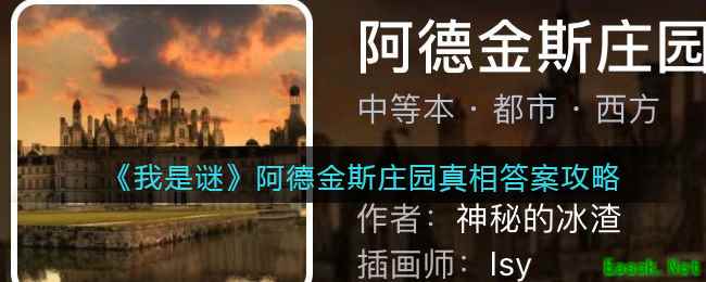 《我是谜》游戏app是一款烧脑的推理类益智游戏,各种类型的剧本应有尽有,其中【阿德金斯庄园】剧本凶手是谁,真相是什么呢?下面给大家带来的是《我是谜》阿德金斯庄园剧本真相答案攻略介绍,感兴趣的小伙伴可以关注一下! >>>>小编推荐:《我是谜》剧本答案攻略大全