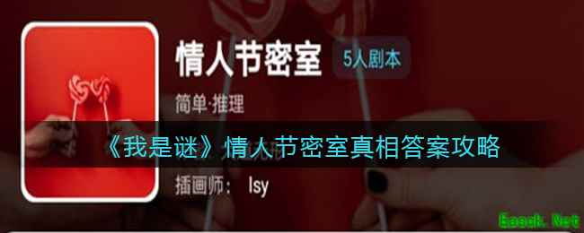 《我是谜》游戏app是一款烧脑的推理类益智游戏,各种类型的剧本应有尽有,其中【情人节密室】剧本凶手是谁,真相是什么呢?下面给大家带来的是《我是谜》情人节密室剧本真相答案攻略介绍,感兴趣的小伙伴可以关注一下! >>>>小编推荐:《我是谜》剧本答案攻略大全