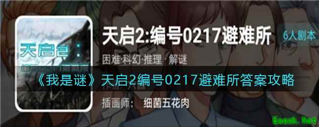 《我是谜》游戏app是一款烧脑的推理类益智游戏,各种类型的剧本应有尽有,其中【天启2编号0217避难所】剧本凶手是谁,真相是什么呢?下面给大家带来的是《我是谜》天启2编号0217避难所真相答案攻略介绍,感兴趣的小伙伴可以关注一下! >>>>小编推荐:《我是谜》剧本答案攻略大全