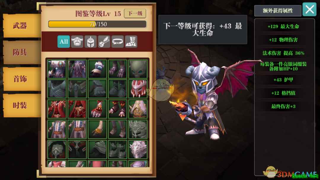 玩家可以通过收集不同的装备来解锁图鉴,升级图鉴等级还会获得额外的属性。