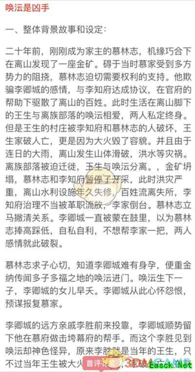 3、出场人物 慕林志:49岁,慕老爷,家财万贯,是离都郡的首富。 李卿城:39岁,慕夫人,李府嫡女,温柔大方,多行善事,被百姓熟知。 唤沄:38岁,慕府姨娘,面容姣好,心思缜密,不争不抢。 李胜:45岁,慕府管家,面无表情是常态,府内下人都说他冷酷无情。 阿碧:17岁,幕夫人院里的侍女,阳光灵动,天真活泼。 4、答案解析