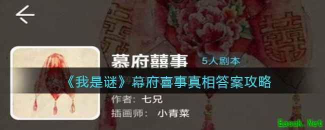 《我是谜》游戏app是一款烧脑的推理类益智游戏,各种类型的剧本应有尽有,其中【幕府喜事】剧本凶手是谁,真相是什么呢?下面给大家带来的是《我是谜》幕府喜事真相答案攻略介绍,感兴趣的小伙伴可以关注一下! >>>>小编推荐:《我是谜》剧本答案攻略大全