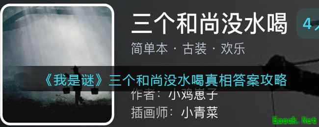 《我是谜》游戏app是一款烧脑的推理类益智游戏,各种类型的剧本应有尽有,其中【三个和尚没水喝】剧本凶手是谁,真相是什么呢?下面给大家带来的是《我是谜》三个和尚没水喝真相答案攻略介绍,感兴趣的小伙伴可以关注一下! >>>>小编推荐:《我是谜》剧本答案攻略大全
