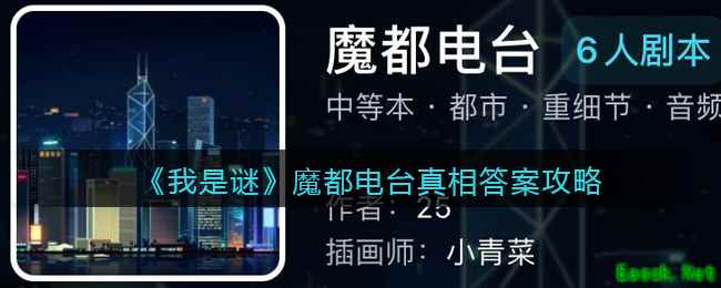 《我是谜》游戏app是一款烧脑的推理类益智游戏,各种类型的剧本应有尽有,其中【魔都电台】剧本凶手是谁,真相是什么呢?下面给大家带来的是《我是谜》魔都电台真相答案攻略介绍,感兴趣的小伙伴可以关注一下! >>>>小编推荐:《我是谜》剧本答案攻略大全