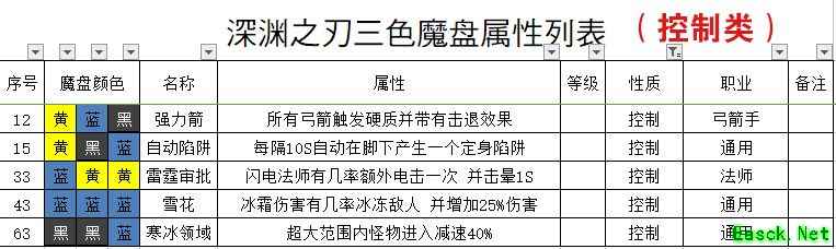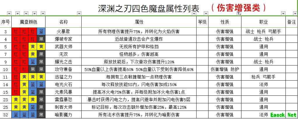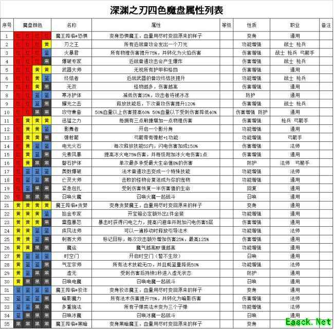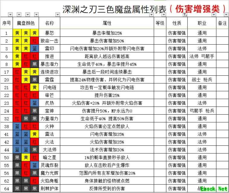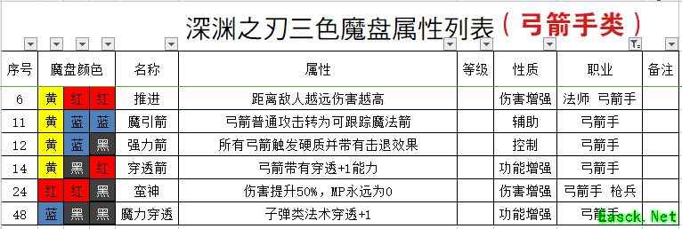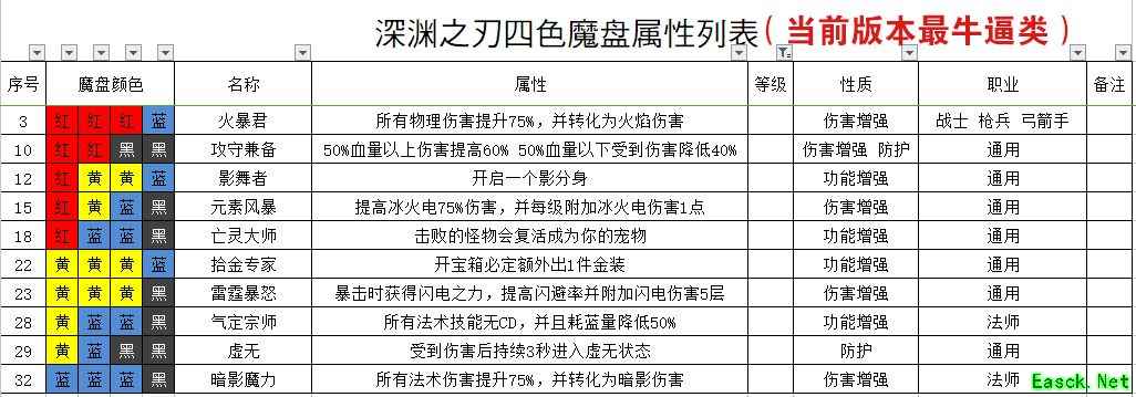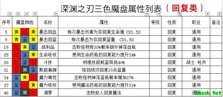 《魔渊之刃》法盘组合大全一、三色法盘搭配 3色法盘有序效果如下: 有序:需要按照颜色的顺序才能激活对应的法盘效果,顺序由里到外。