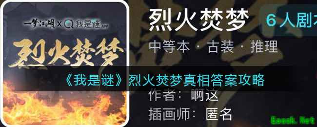 《我是谜》游戏app是一款烧脑的推理类益智游戏,各种类型的剧本应有尽有,其中【烈火焚梦】剧本凶手是谁,真相是什么呢?下面给大家带来的是《我是谜》烈火焚梦真相答案攻略介绍,感兴趣的小伙伴可以关注一下! >>>>小编推荐:《我是谜》剧本答案攻略大全