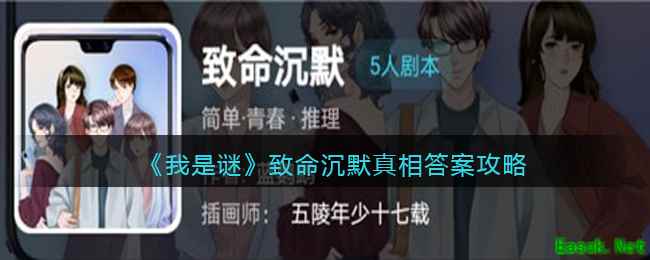 《我是谜》游戏app是一款烧脑的推理类益智游戏,各种类型的剧本应有尽有,其中【致命沉默】剧本凶手是谁,答案真相是什么呢?下面给大家带来的是《我是谜》致命沉默真相答案攻略介绍,感兴趣的小伙伴可以关注一下! >>>>小编推荐:《我是谜》剧本答案攻略大全