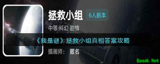 《我是谜》游戏app是一款烧脑的推理类益智游戏,各种类型的剧本应有尽有,其中【拯救小组】剧本凶手是谁,真相是什么呢?下面给大家带来的是《我是谜》拯救小组真相答案攻略介绍,感兴趣的小伙伴可以关注一下! >>>>小编推荐:《我是谜》剧本答案攻略大全