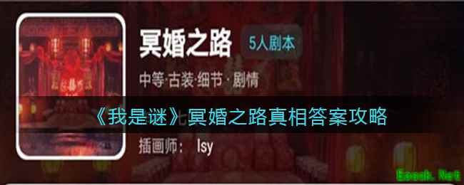 《我是谜》游戏app是一款烧脑的推理类益智游戏,各种类型的剧本应有尽有,其中【冥婚之路】剧本凶手是谁,真相是什么呢?下面给大家带来的是《我是谜》冥婚之路真相答案攻略介绍,感兴趣的小伙伴可以关注一下! >>>>小编推荐:《我是谜》剧本答案攻略大全