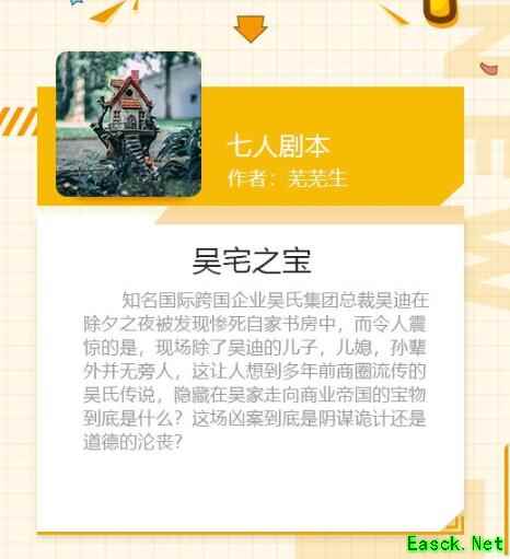 我是谜游戏有很多的剧本可供玩家选择体验,其中吴宅之宝这个剧本是一个奇人都市剧本,我是谜吴宅之宝真相是什么呢?今天给大家带来了我是谜吴宅之宝剧本真相解析,杀死吴迪的凶手是:撒白田。