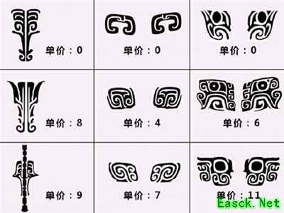 这是什么啊: 仔细观察会发现纹饰图样中的9个兽面纹,其实是由耳、眼、鼻部位的各3个不同元素组合而成。首先根据第七个(价格为0)的图样,参照“可以免费但是没有倒贴赔钱图案的提示,可以知道组成该图案的三个元素都为0金。 然后对比第2和第4个图样,两个图样的区别是替换了耳朵,替换后图样整体价格增加11。而图样2的耳朵单价为0,由此可以可知图样4个耳朵单价为11 同样的,对比1和6,2和5图样可以计算出各组成元素的单价,进而得到缺失价格的两个纹饰的价格应该是27和18 用密码2718打开笔记本,获得提示字母“R”