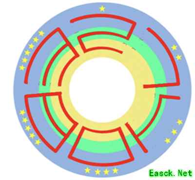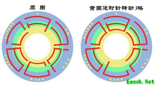 再将黄圈和绿圈一同逆时针转动2格(或者蓝圈顺时针转动2格),就可以得到匹配的数字图案。