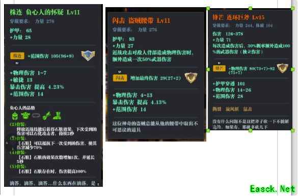 负心人的5件套增伤100% 减伤70% 可以再转圈圈的时候完美发挥作用,盗贼腰带和连环斧头绕后可以打出成吨的伤害。(盗贼腰带背后攻击加一次50%武器攻击可以触发斧头被动的效果)