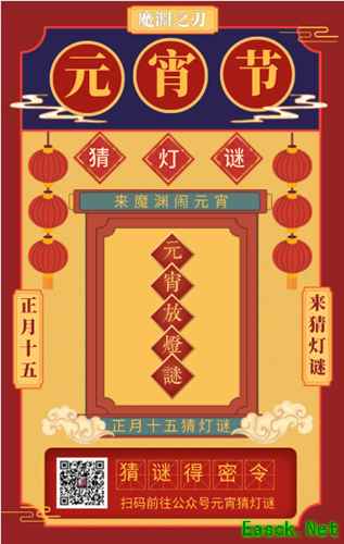 【活动介绍】 给大家准备了4句字谜 每句字谜的正确答案 组合成4字词语就是元宵的节日密令 4句字谜将在正月十五当天在公众号公布给大家 输入“猜灯谜”即可获取谜题 以上就是小编整理的关于魔渊之刃2021元宵节活动介绍的全部内容,更多游戏攻略请持续关注手游网! |