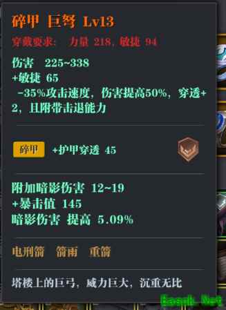 破茧之刺 一、基础职业 弓箭 二、装备搭配 武器 巨弩