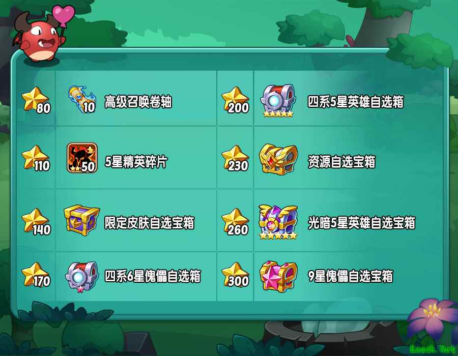 活动礼包 (1)活动期间,可购买大冒险礼包,其中有豪华四系5星英雄自选箱包含四系所有初始5星英雄。