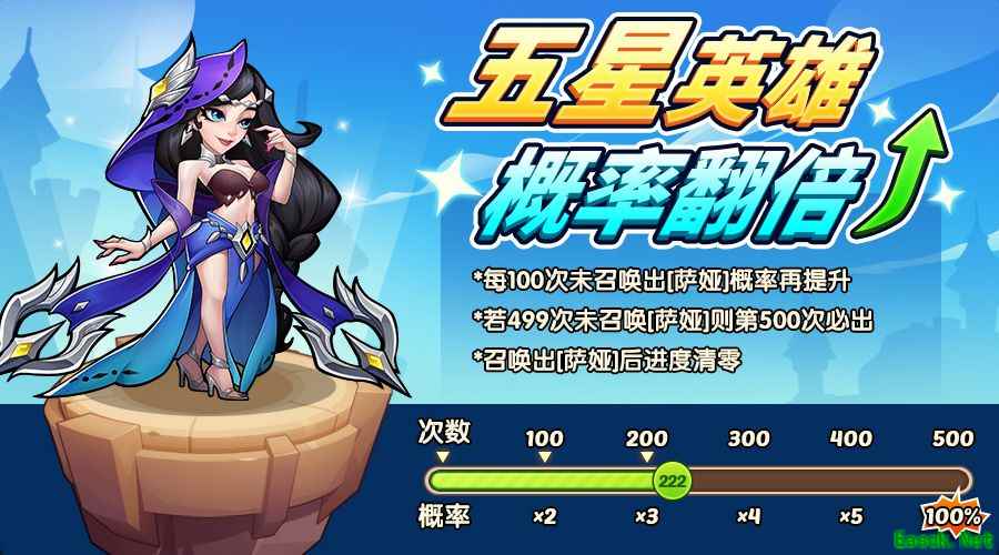 《放置奇兵》新英雄萨娅获取方法新英雄上线 2021.09.03 00:00 - 2021.09.09 23:59 活动期间,召唤五星英雄概率翻倍,有更高的几率召唤到堡垒新英雄——萨娅。 若获得了新英雄萨娅(包括高级召唤和五星碎片召唤),还将获得一套橙色三星装备。