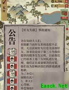 2、进入应天府后就可以在下方看到告示,右边可以查看公告。