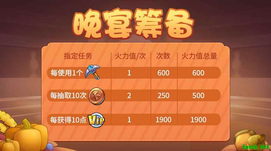 另外,使用秘银镐属于【晚宴筹备】活动的指定任务之一,完成可获得火力值哦! 宝箱内的奖励以当周游戏进程为准。 2.为庆祝感恩节的到来,兵粉们需要帮助女仆安娜准备一场晚宴。完成图示指定任务可获得火力值,每当火力值达到100时,安娜将会送你一张宴会入场券,入场券可用于【火鸡宴会】活动中。同时你还可以获得一次开启礼物盒的机会,随机抽取一名五星英雄。