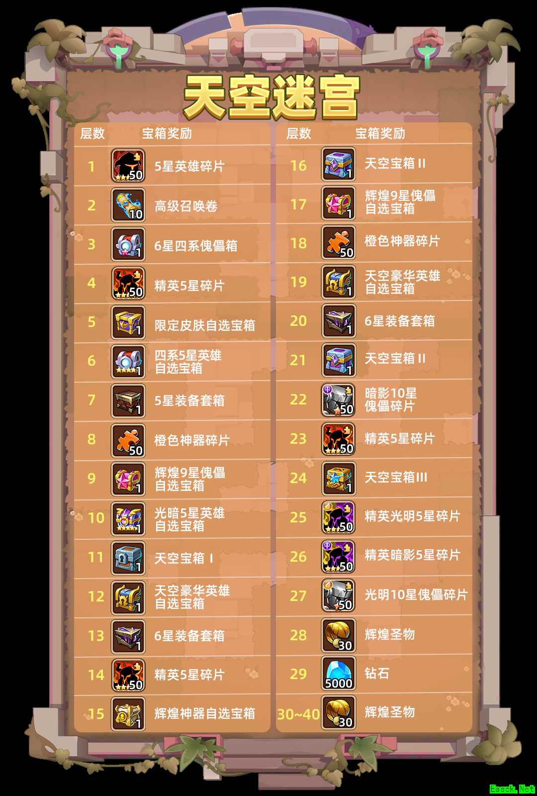 活动公告 1.活动期间,通过使用秘银镐击碎石板来探索迷宫,可获得隐藏在石板下的奖励!每通过一层迷宫,即可获得对应奖励宝箱,通过层数越多,宝箱奖励越丰富~