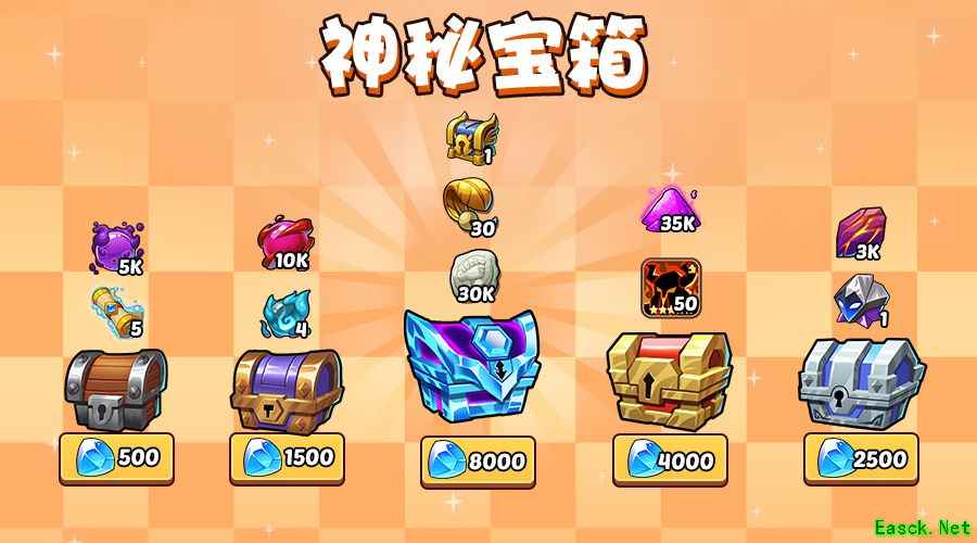 最高可完成九轮,高级许愿池不参与该活动。 6.活动期间,使用钻石可购买宝箱。第二、三档宝箱中包含了魔兽材料,第五档宝箱中则包含公会币、辉煌圣物和英雄荣耀自选箱。