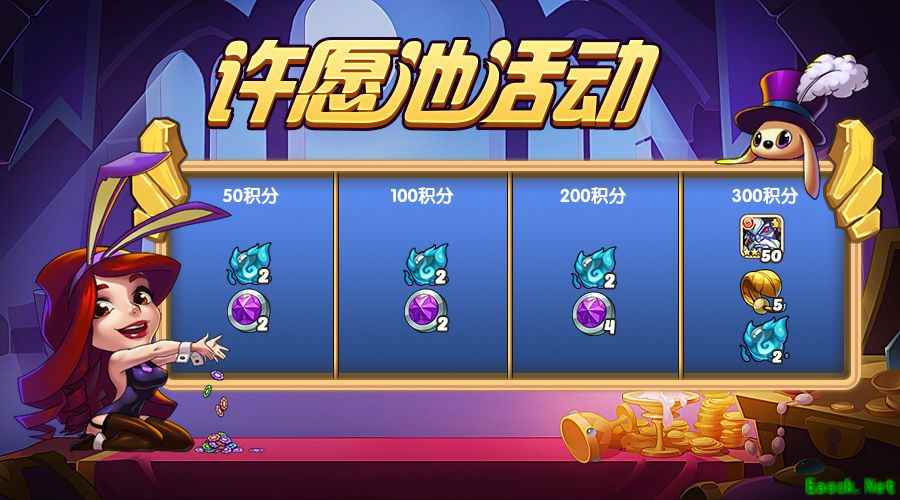四系5星英雄自选箱与辉煌圣殿同步。 5.活动期间,在普通许愿池使用许愿币可以获得积分,当积分达到指定数额即可获得对应奖励。300积分奖励的英雄为深渊战士——巴顿国王。