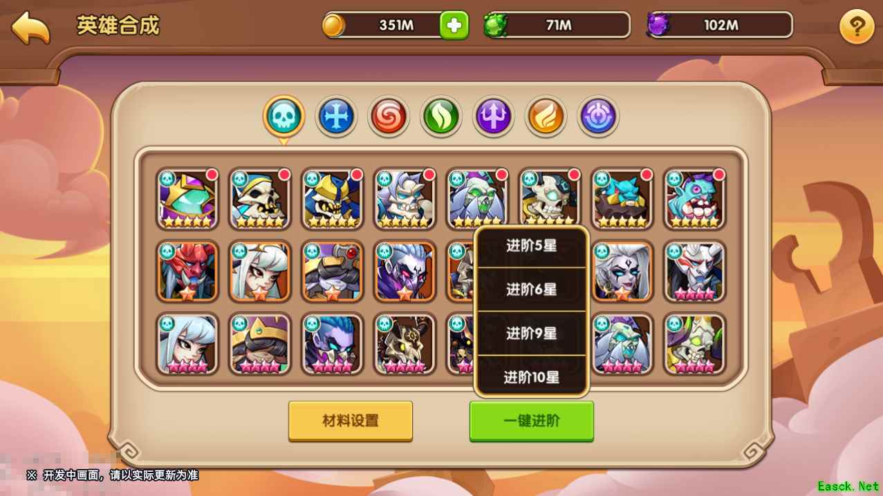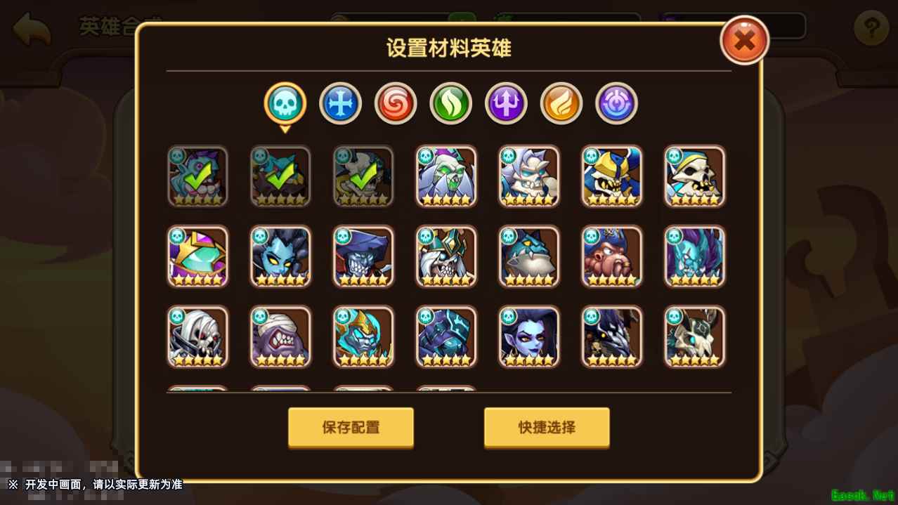 (批量升星界面) 同时,为了防止兵粉们不小心消耗掉还需要的英雄,我们还专门增加了【设置材料】功能。 可以快捷选择,也可以自行选择,再也不用担心用错材料啦!