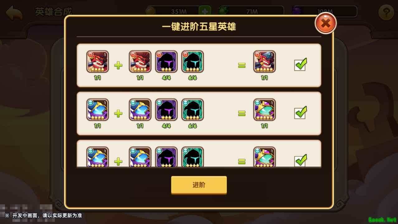 (创造法阵主界面) 本次更新后,每个阵营窗口中会优先排列满足升星条件的英雄,一眼就能看到可升星的英雄! 而且此次优化后,创造法阵不仅可以进阶到五星、六星,甚至还可以直接一键进阶到九星、十星!