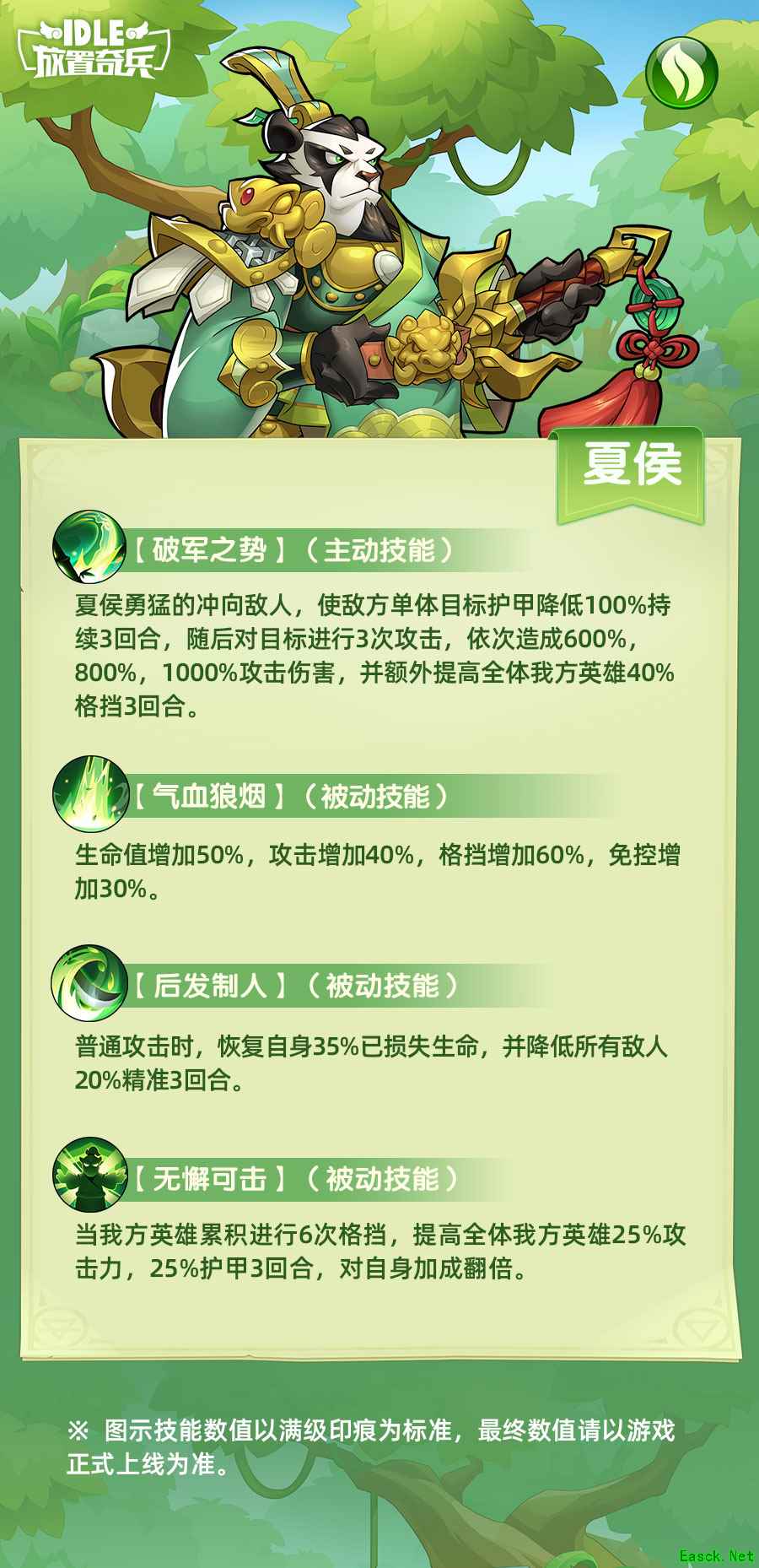 《放置奇兵》是一款非常不错的休闲放置类游戏,夏侯是游戏中的新角色,这个角色技能怎么样,值得培养吗?下面小编就给大家带来了《放置奇兵》夏侯技能图鉴介绍,想要了解的一起看看吧!