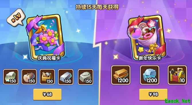 6、活动期间,两种家园材料卡提供购买,购买后连续15天,每天都可通过邮件获得相应奖励。 其中庆典祝福卡内的奖励均与角色等级(不是英雄等级)相关联哦~ 若在活动最后一天购买,依旧会持续15天每天获得奖励。