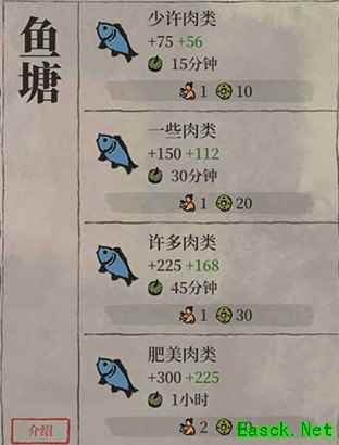 肉类算是一个二级资源,后期的许多建筑。 比如饭店在生产的时候就比较需求这个东西,都需要使用到这个肉类。 鱼塘产出肉类等级图: