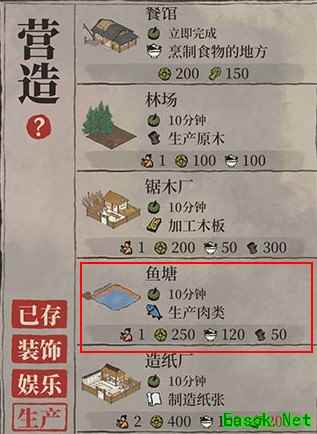 肉类获取方法介绍玩家需要在游戏中营造这个鱼塘,就可以生产肉类了。