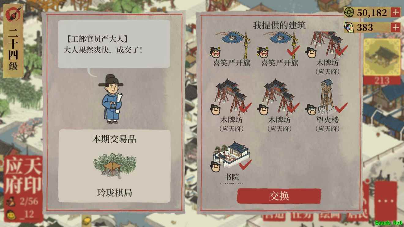 快速升级攻略1、升级最快的方法在于和西域商人交易,商人等待交易的时间越短,下次来的越快,反之亦然,等的越久下次越慢。并且一个城市商人等的久,同样影响另一个城市。 2、随着经验升级(不是建筑等级),之前的生产建筑会一级级的减少对特殊居民的要求,直至即使四级也不需要特殊人物,不必但需特殊居民不足 3、探险里集市会给资源、小温泉给50体力、摇钱树给钱,有个打三个小贼任务,会额外奖励铜钱,六个小贼要一次打完,我体力不足换人后,另三个小贼打不了了。